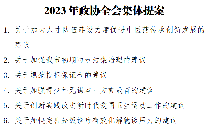 农工党最佳娱乐365bet_365时政_365bet线上娱乐委会向大会提交了《关于加大人才队伍建设力度促进中医药传承创新发展的建议》《关于加强我市初期雨水污染治理的建议》《关于规范投标保证金的建议》《关于加强青少年无锡本土方言教育的建议》《关于创新实践改进新时代爱国卫生运动工作的建议》《关于加快完善分级诊疗有效化解就诊压力的建议》等6件集体提案,紧扣“无锡新实践”核心主题,聚焦“健康无锡”“美丽无锡”工作主线,充分发挥参政议政职责,从不同领域和角度,为奋力谱写“强富美高”新无锡现代化建设新篇章,发出农工声音,贡献农工力量。
