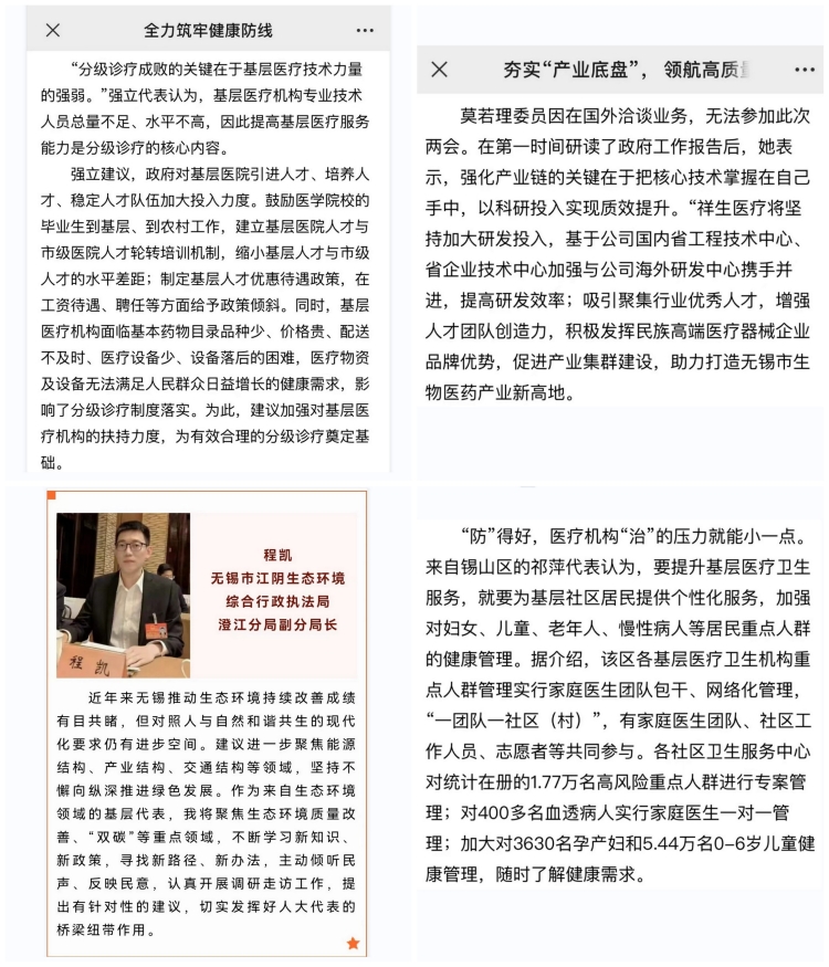 张琦、丁晏、祁萍、强立、高福安、于小红、莫若理等代表委员,还接受了无锡日报、江南晚报、无锡博报等媒体记者采访,谈感言,抒心声,话将来,述建言,在全市人民高度关注的“两会”高光时刻,传播农工好声音,扩大农工影响力。
