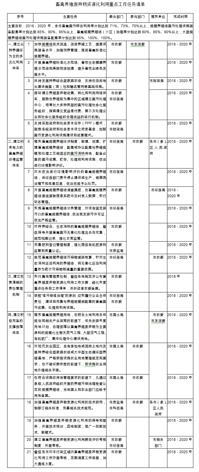 附件:畜禽养殖废弃物资源化利用重点工作任务清单