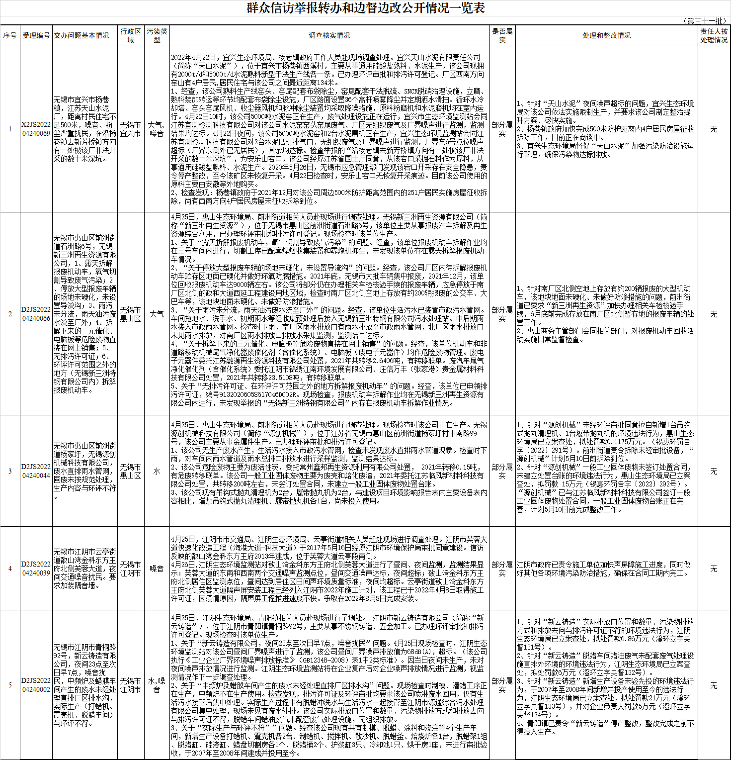 群众信访举报转办和边督边改公开情况一览表(第三十一批)